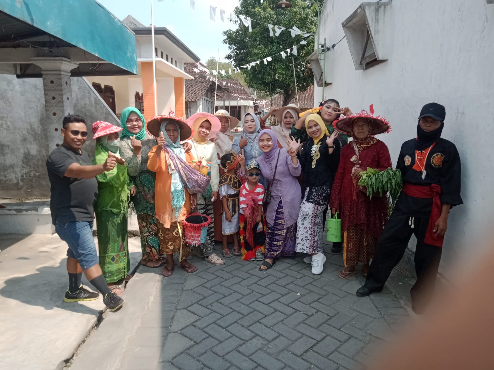 Juga warga sekitar berbondong bondong menyaksikan karnaval dengan bermacam macam seni budaya dan busana adat Jawa.