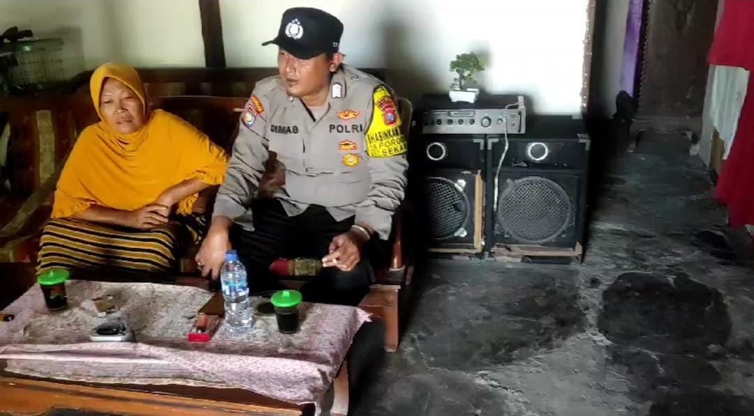 Bripka Dimas dalam melaksanakan tugas Sambang Desa Sobo Pawon dengan menggunakan slogan Ngopling Mas (Ngobrol Ngopi Keliling Kamtibmas.