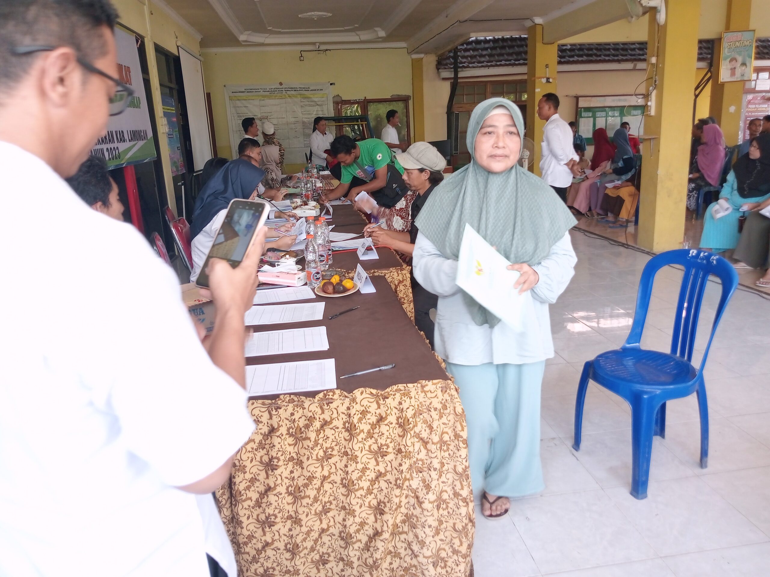 Balai Desa Siman Kecamatan Sekaran Kabupaten Lamongan sejak pukul 08.00 WIB sudah dibanjiri warganya. 08/10/2023.