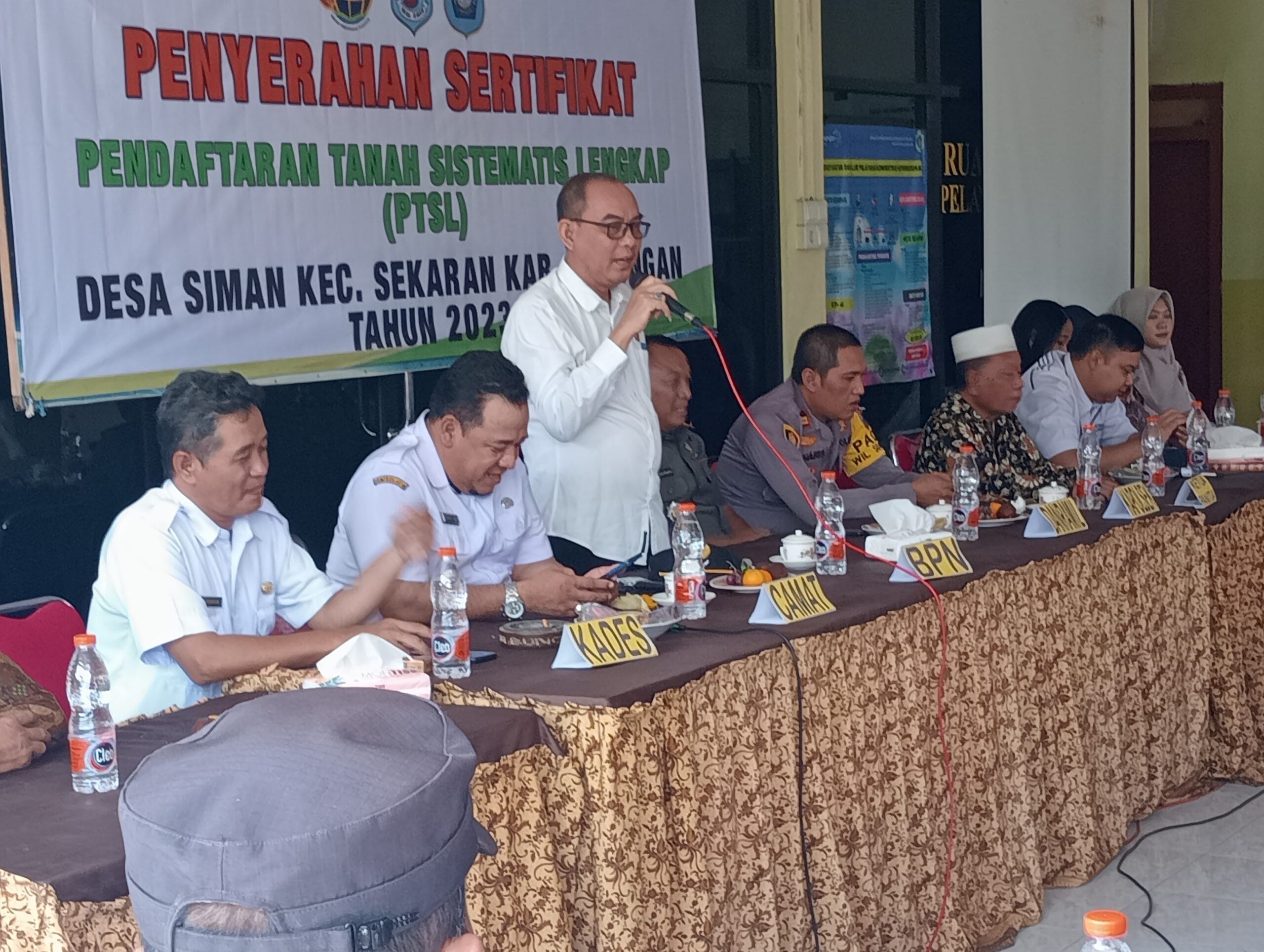 Dalam acara penyerahan sertifikat tersebut Kepala Desa Siman Sodikun berpesan bahwa dengan tingginya nilai sertifikat yang akan diterimakan pada masyarakat, agar seluruh penerima nanti menyimpan dengan baik.