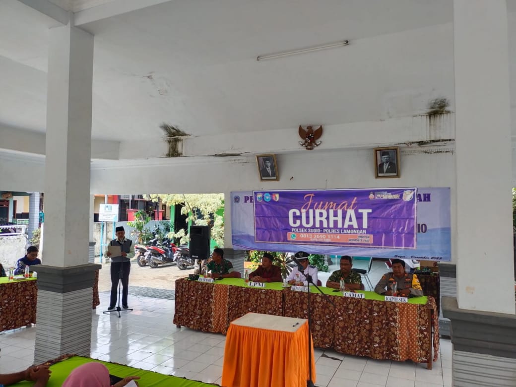 Lamongan,Kapolsek Sugio AKP Muhammad Lukman Hadi, S,H,M,H,Laksanakan Kegiatan Jumat Curhat,Jumat Sehati Bertempat di Balaidesa Sugio,kecamatan Sugio (29/12/23).